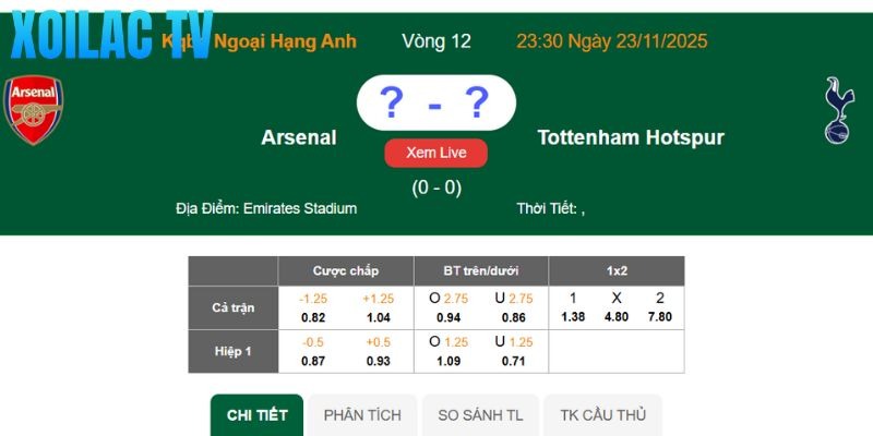 Trận derby Bắc London giữa Arsenal vs Tottenham Hotspur vào ngày 23/11, Xoilac chắc chắn sẽ là một trong những trận đấu đáng xem nhất của vòng 12 Ngoại hạng Anh. Với lợi thế sân nhà và phong độ ổn định hơn, Pháo thủ đang được đánh giá cao hơn. Tuy nhiên, trong một trận cầu đỉnh cao, giàu cảm xúc như thế này, mọi chuyện đều có thể xảy ra.